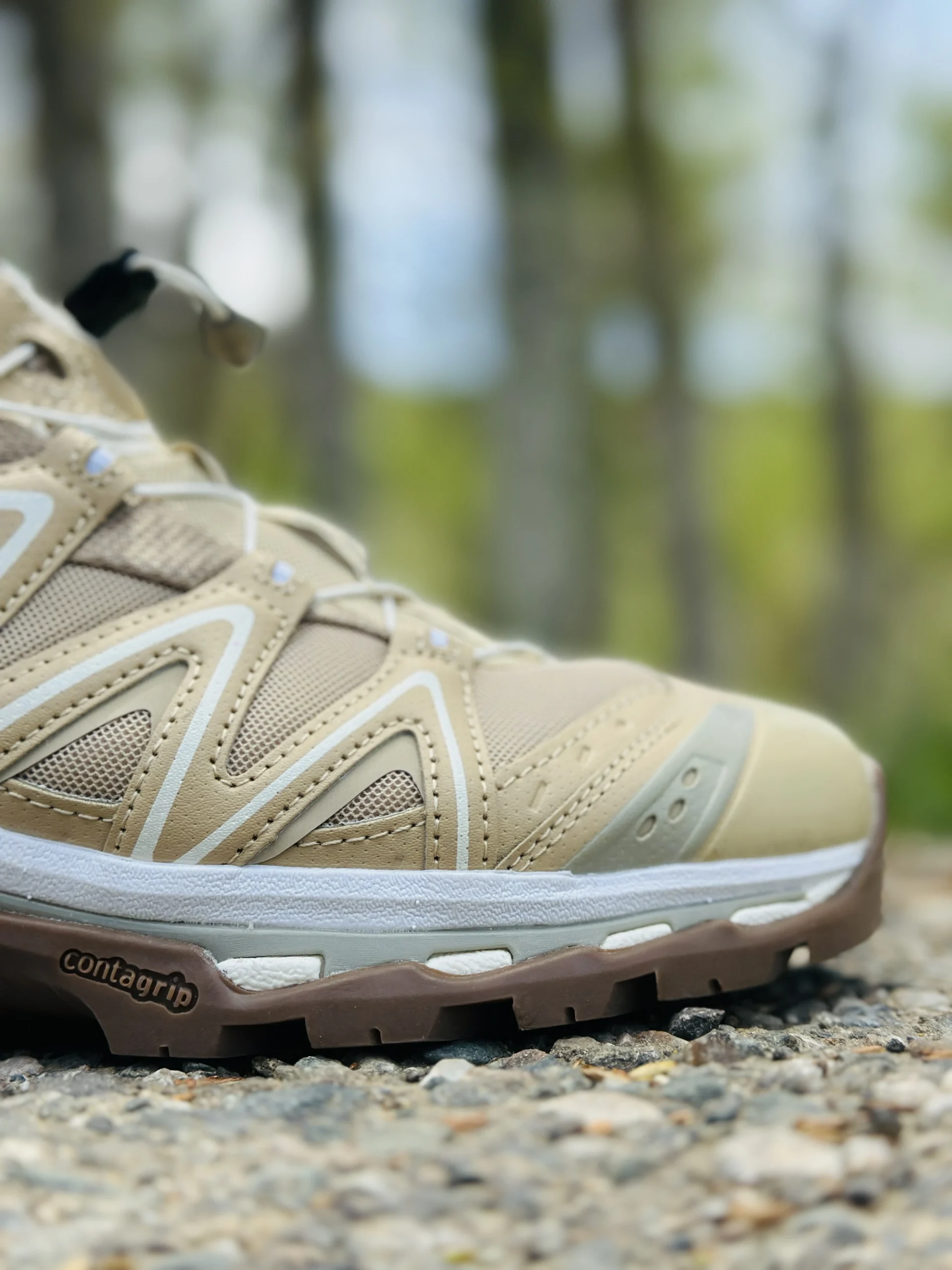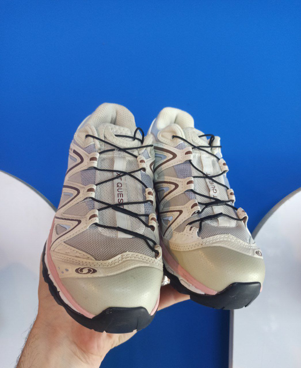* این مدل یک طراحی هیبریدی است که DNA فنی کفشهای تریل (مثل XT-Wings Trail) رو با ساختار Quest 4D بوت ترکیب کرده تا ظاهری چندلایه و مقاوم ایجاد کنه.